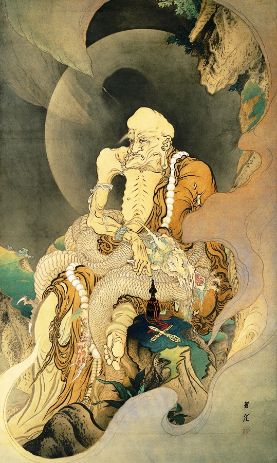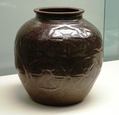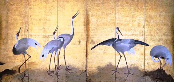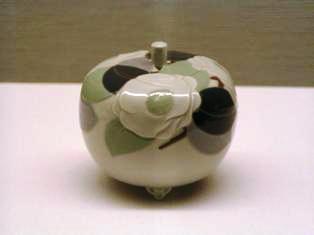 梅白釉釉描色絵金彩月と五位鷺六角大筥 |