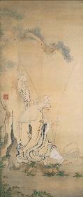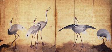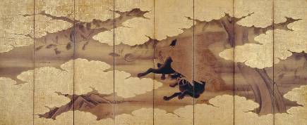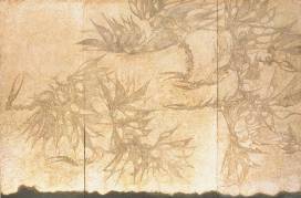 曾我直庵「松柏に鷹図屏風」 (右隻)