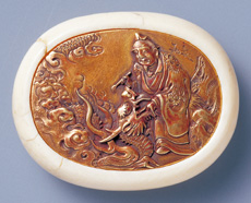 岡島氏が福井県に寄贈されたコレクションは喫煙具や貨幣、仏像、漆工芸など総数672点におよびます。福井県立美術館の常設展示にコーナーが設けられている他、テーマ展や嶺南地域での移動美術館で展示するなど広く皆様に鑑賞していただけるよう展示の機会を設けています。