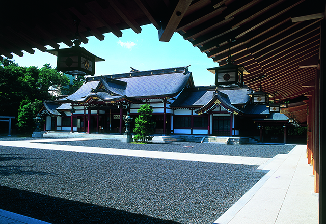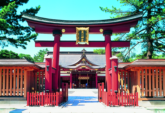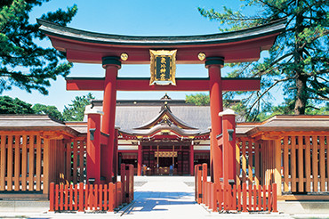 「けひさん」の愛称で親しまれ、地元の人が人生の節目ごとに訪れるお社で、家族の絆を深めよう。朱塗りの大鳥居は「日本三大木造大鳥居」のひとつで、国の重要文化財にも指定されている。貫禄ある亀の石像から湧き出る「長命水」も飲んでいきたい。「しあわせの聖地」認定スポット。