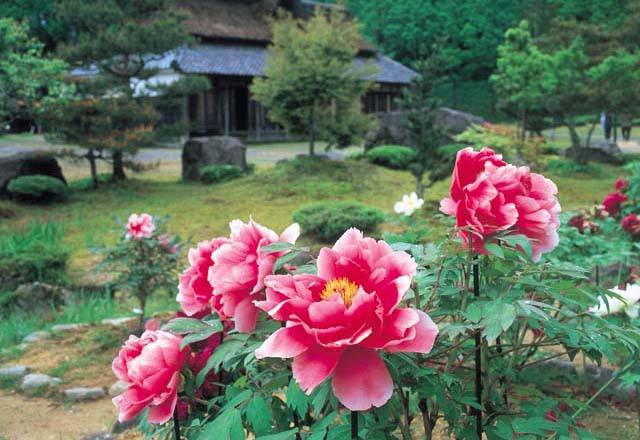 越前市で一休みするなら、日本庭園や四季の花々、紅葉が見事な「万葉の里 味真野苑」へ。散策も楽しく、3月下旬からはミズバショウ、5月上旬はボタンが見ごろ。この辺りの味真野地区は万葉集に縁深く、苑内には万葉集の代表的な歌を刻んだ歌碑が建っている。