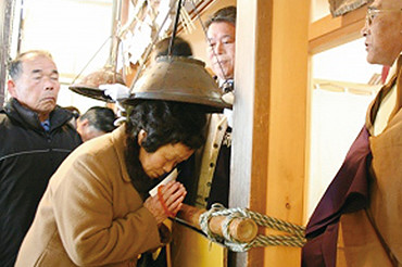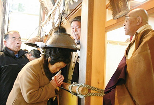 毎年2回、2月20日と3月2日に行われる「すりばちやいと」。天台宗の元三大師が悪病に苦しむ人たちを助けようと始めた加持療法で、頭にかぶる護摩炉が「すりばち」に似ているため、こう呼ばれるように。「しあわせの聖地」認定スポット。