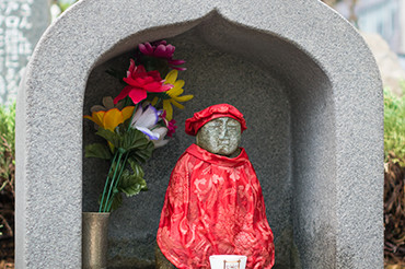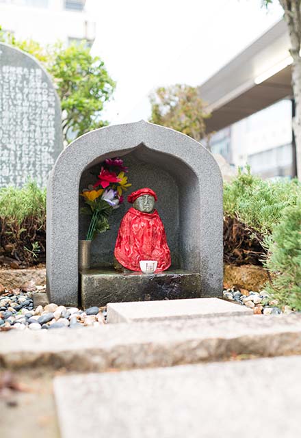 古町商店街の小さな公園に佇むお地蔵さんに、清らかな水を3度かけて願かけすると、願いが叶うという言い伝えがある。水はお地蔵さんのすぐ隣にある手水鉢からどうぞ。