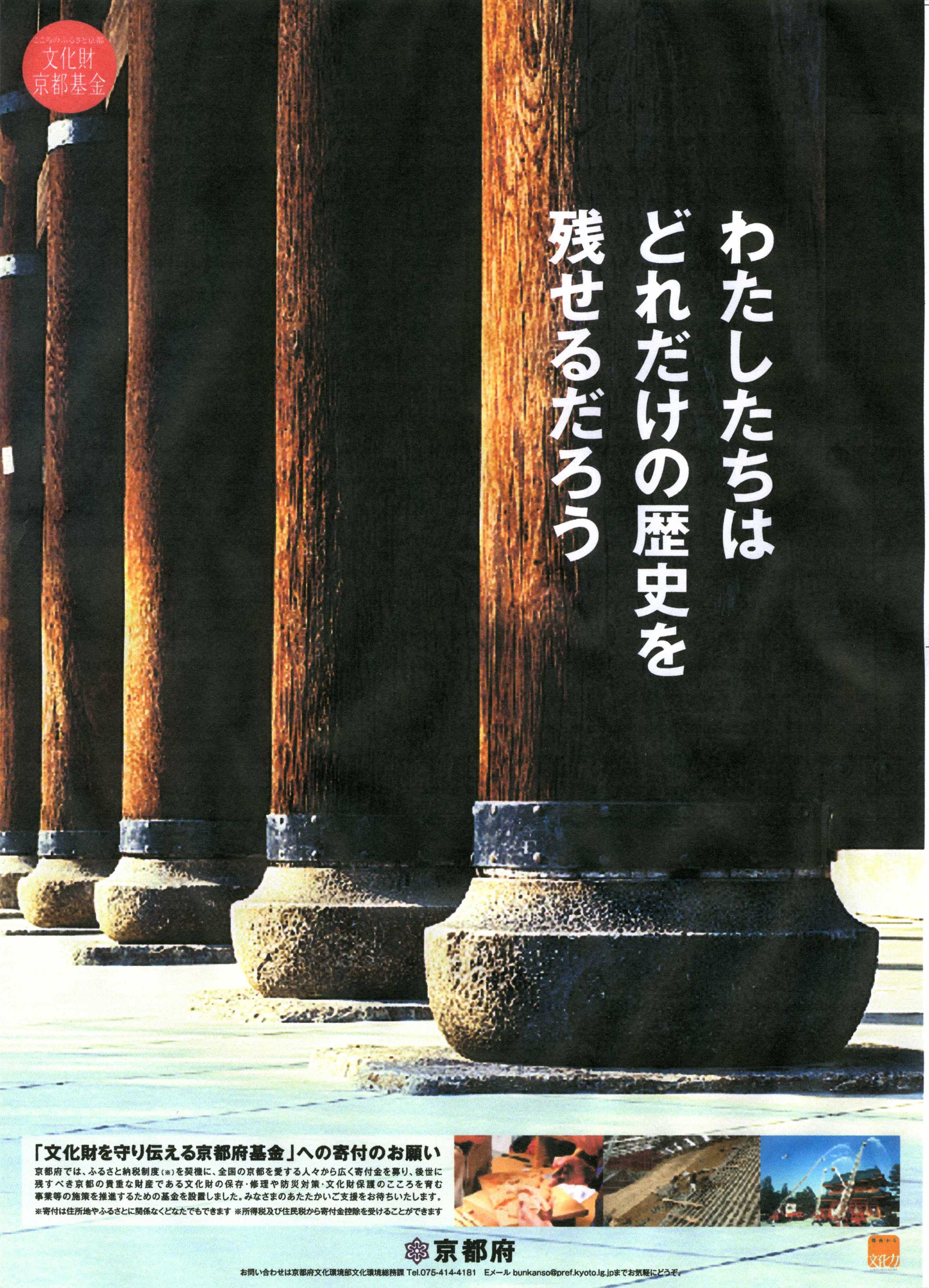 集まった寄附金については、府内の歴史的建造物などの貴重な文化財を、地震・火災から守り、保存・修理するための事業などに使わせていただきます。
