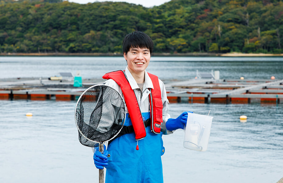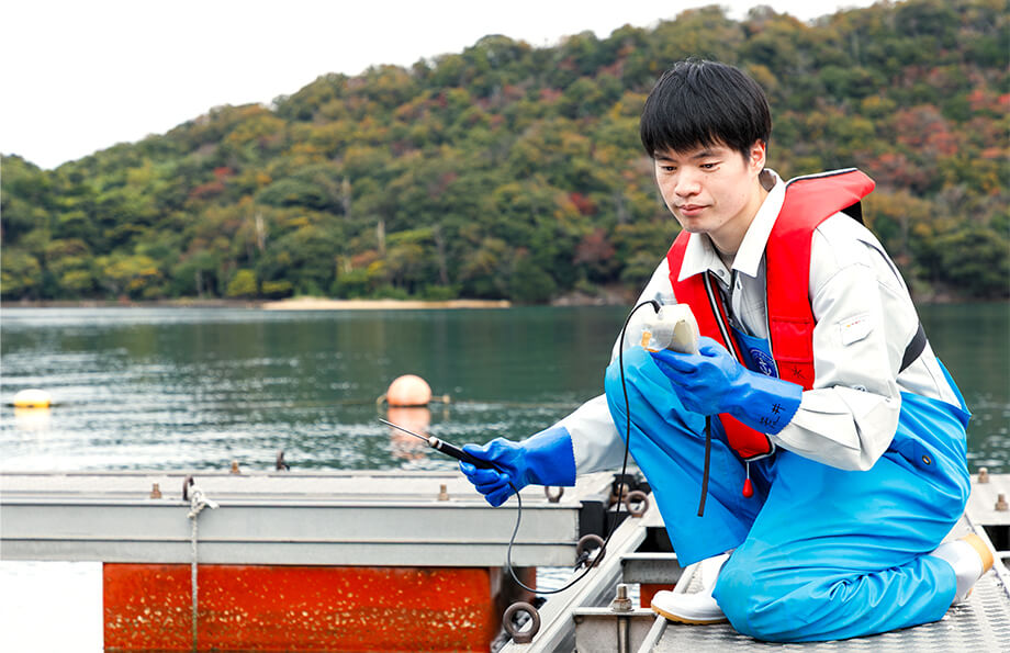 水産業の振興施策の企画立案、漁業等の許認可、資源管理の推進のほか、水産試験場等での水産資源・海洋環境の調査研究、種苗生産技術の研究開発などに従事します。