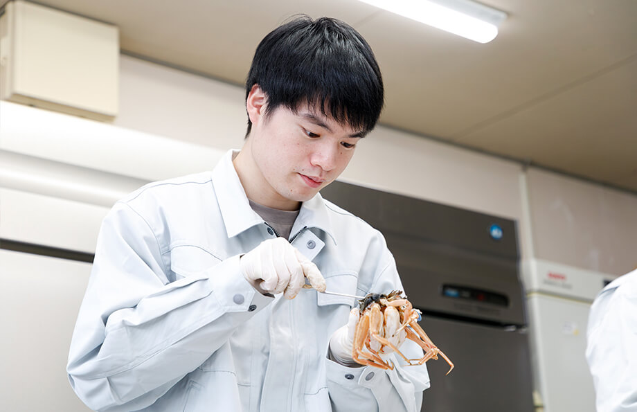ズワイガニやアカガレイなど、海底に生息する「底魚」と言われる魚種が持続的に漁獲できるよう、資源に関する調査・研究を行っています。