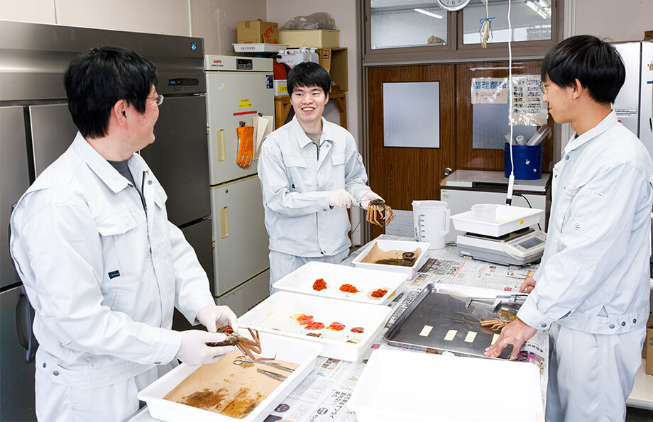 経験豊富な先輩が親身になって相談に乗ってくれます。職場の人数も多くないため、仲が良くて仕事中でも笑顔が多い、とても和やかであたたかい職場です。先輩たちは魚の捌き方や調理方法、生態などの知識が豊富で、雑談の中でも勉強になることが多いです。