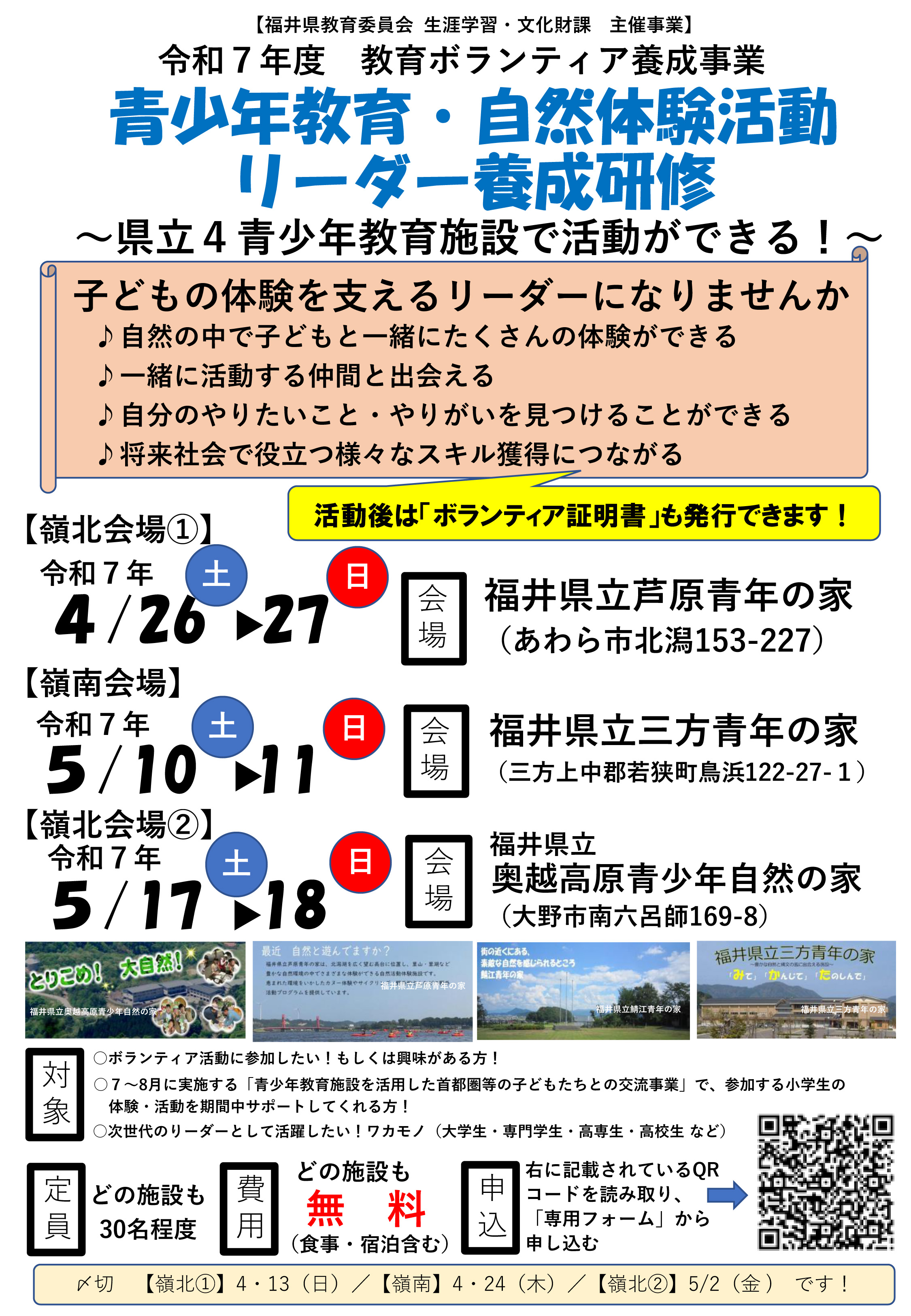 お申し込みは☎0779-67-1321または、QRコードを読み取ってください。
