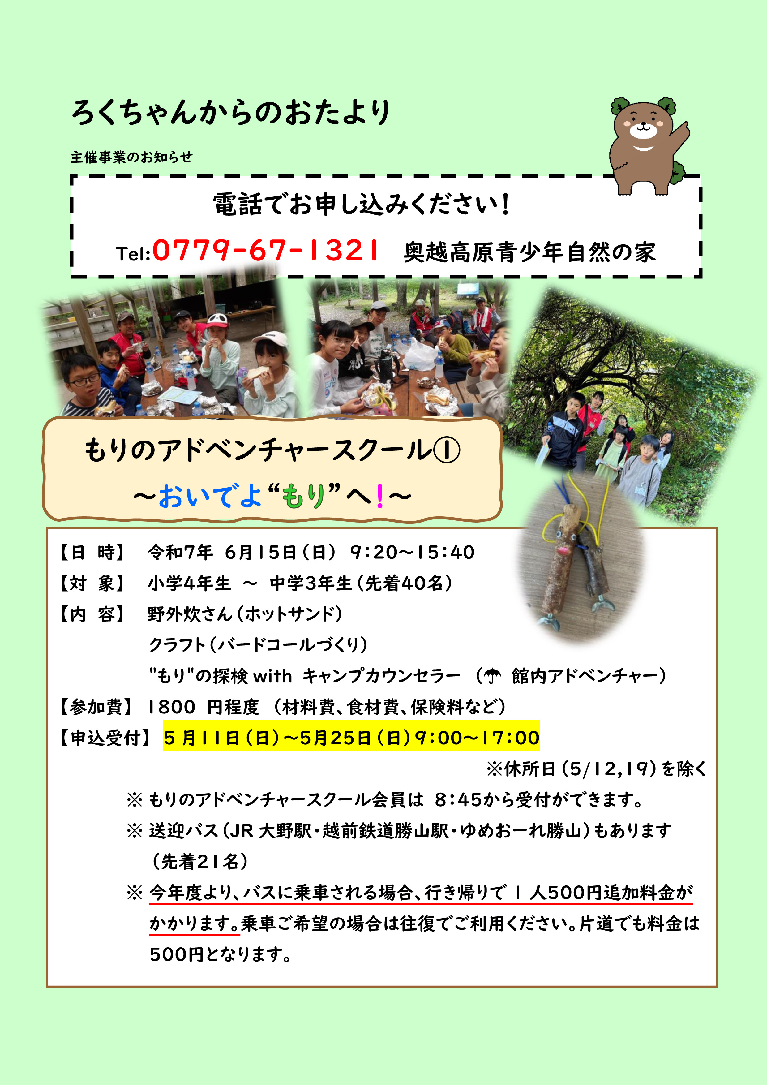令和7年度 奥越高原青少年自然の家行事予定はこちら