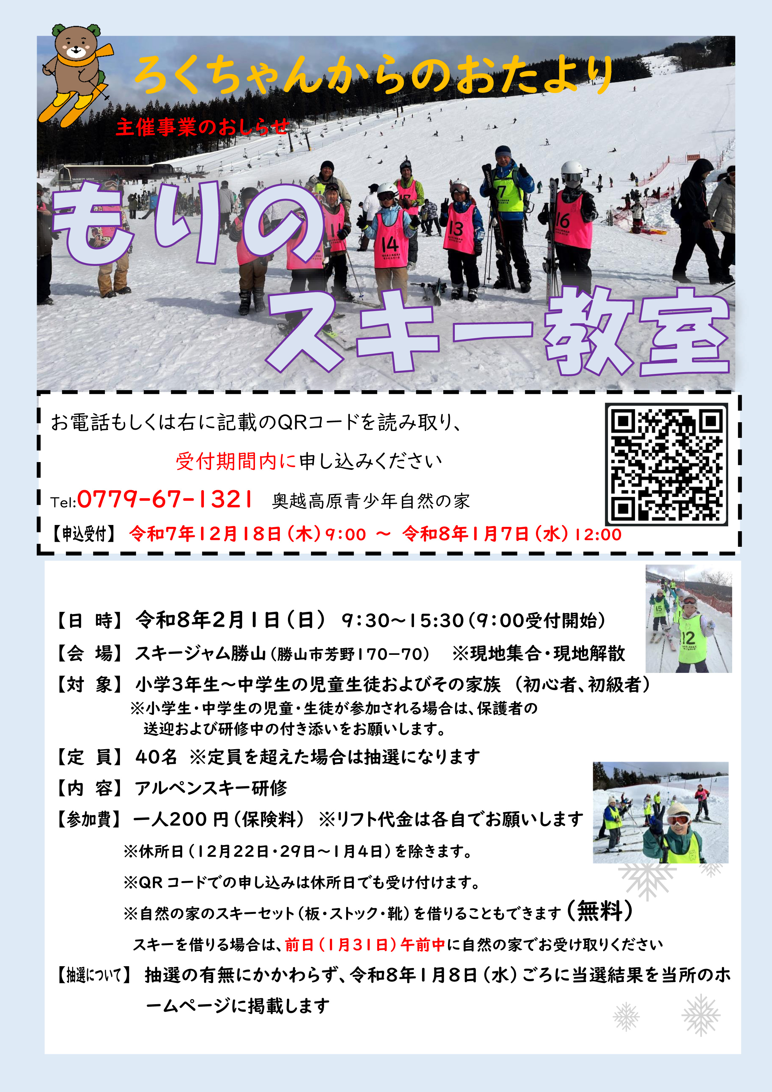 - 12月18日(木)午前9時よりもりのスキー教室の募集を開始します。
