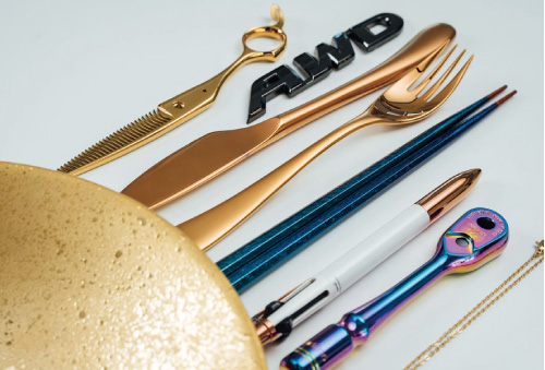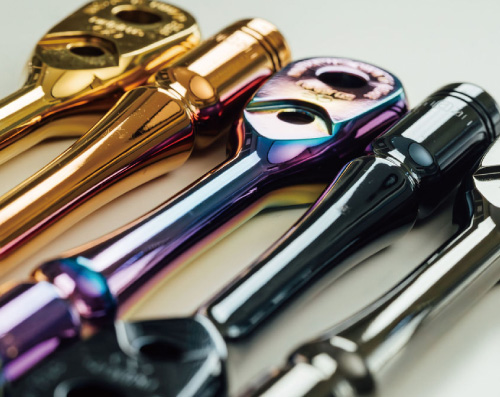 当加工技術の最大の特長は、世界で初めて、低温での処理を可能とすることから、世の中にあるほとんどの固体(金属、プラスチック、ゴム、ガラス、紙、陶磁器、繊維、木材など)にイオンプレーティング皮膜をつけることができる点にあります。さらに、金属膜のみならずセラミック膜としてコーティングすることができるため、従来の着色技術と比較しても抜群の強度や耐久性を発揮。HONDA全車種のオプションカラーエンブレムに採用されています。