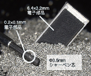 当社が世界で初めて電子部品のバレルめっき工法を開発。部品の微小化へのニーズにも対応し、0.2mmサイズの極小電子部品にも均一にめっきすることができます。更には大気中の花粉よりも小さい「数マイクロメートルの粉体」にもめっきが可能です。これら小さいモノへのめっきを可能にした技術革新が、スマホなどの電子機器の高機能化だけでなく、新材料開発にも活用されています。