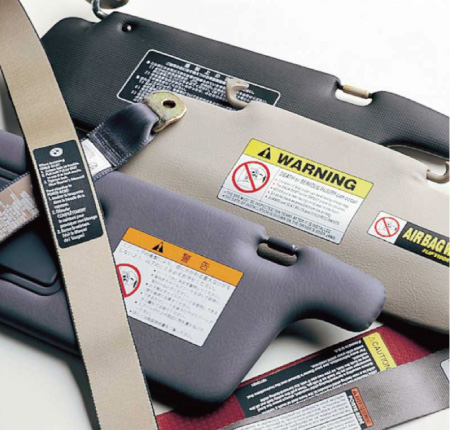 自動車のサンバイザーに表示するエアバッグのコーションラベルや、自動車のシートベルトに表示するシートベルトのコーションラベルを各自動車メーカーに供給し、国内でトップシェアを獲得しています。