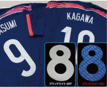 サッカーでは多くのサポーターが、サポートするチームのユニフォームを着て試合を観戦します。そのユニフォームのナンバーやネーム(選手名)もチームのブランドです。このブランドを守るために、2007年にJリーグチームのナンバーやネーム向けに「模倣対策熱転写ラベル」を開発し、2008年からはサッカー日本代表ユニフォーム用にも採用されています。熱転写が可能な素材であれば、この模倣対策熱転写ラベルによって、ブランドの信頼を高めることができます。
