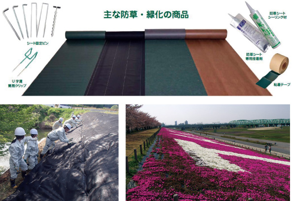 当社のチガヤシートは、チガヤの突き抜けを防ぐのに必要な強度と約10年の耐久性を兼ね備えた製品です。雑草対策及び管理コストの軽減を目的に、道路や鉄道沿線、近年は太陽光発電施設などでも採用されています。現在では当社の防草シートは全国で年間約330万㎡分使用されています。