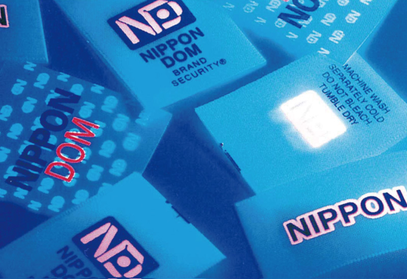 ファッションブランド業界の最大の敵である偽造品、模造品の横行を防ぐために、特殊技術を駆使して製造した織ネームです。織ネームを確認することで本物と偽物をはっきり区別することができることから、著名ブランド品の真贋識別、偽造防止目的で使用されており、アパレル製品はもとより、バッグ、シューズなどの本体およびパッケージ、紙タグなどに取り付けられています。