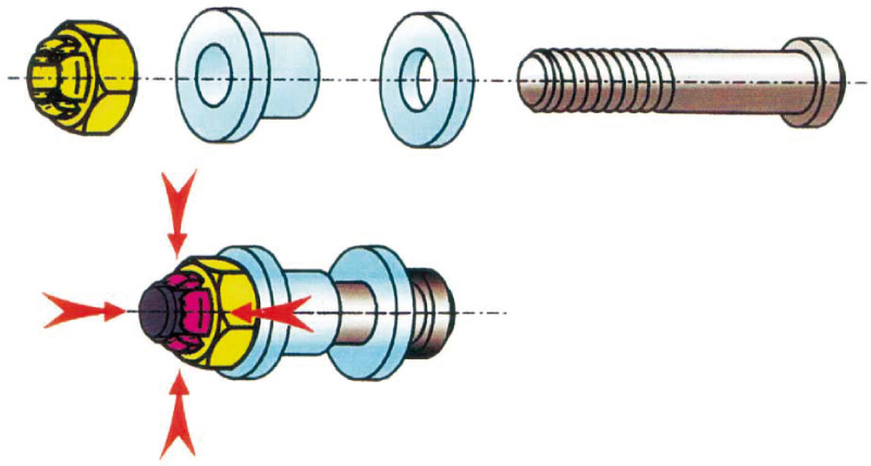 通常のナットを使用した場合、振動や衝撃などにより時間がたつにつれネジが徐々に緩んでしまい、ガタつきの原因となっていました。その問題をクリアさせたのが、緩み止め機能を付加させた世界最小の緩み止め機能付きナット「クロスグリップナット」です。
