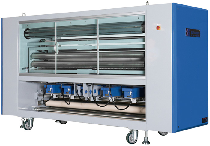 本装置は、緯糸の布目曲り方向および角度を検知し、コンピューター制御によって自動的にその布目曲りを矯正する、繊維加工業になくてはならない装置であり、国内シェアナンバーワン(90%)を誇っています。当社は長年の研究による高度な技術と綿密な作業による高品質な製品の供給を続けています。