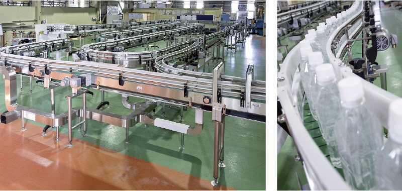 毎月のように生み出されるビール、緑茶、清涼飲料水などの新商品。メーカー間の競争は激しく、効率的な生産体制を迅速に整備することが求められる中、当社は、飲料・食品用コンベヤの製造で、メーカーを支えています。某メーカーのビールの大ヒットの際の増産ラインを担当し、稼動率をアップすることに成功、シェアアップに貢献したのをはじめ、ビール、ソフトドリンク、乳業、酒造他、メーカー各社に納入、国内シェアトップレベルを誇ります。
