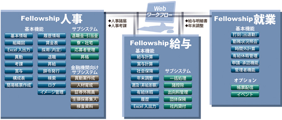 個人情報管理、賃金決定、給与計算、勤怠管理など人事関連業務を一元管理できるシステムを提供。人財育成、社内貸付、寮社宅管理など人事関連サブシステムのほか、金融機関固有の資格管理機能や多拠点を一元管理出来る勤怠管理なども提供しています。また、このシステム開発に高性能の開発ツールを使用しており、各種人事制度の変更などに短納期・低費用で対応できております。